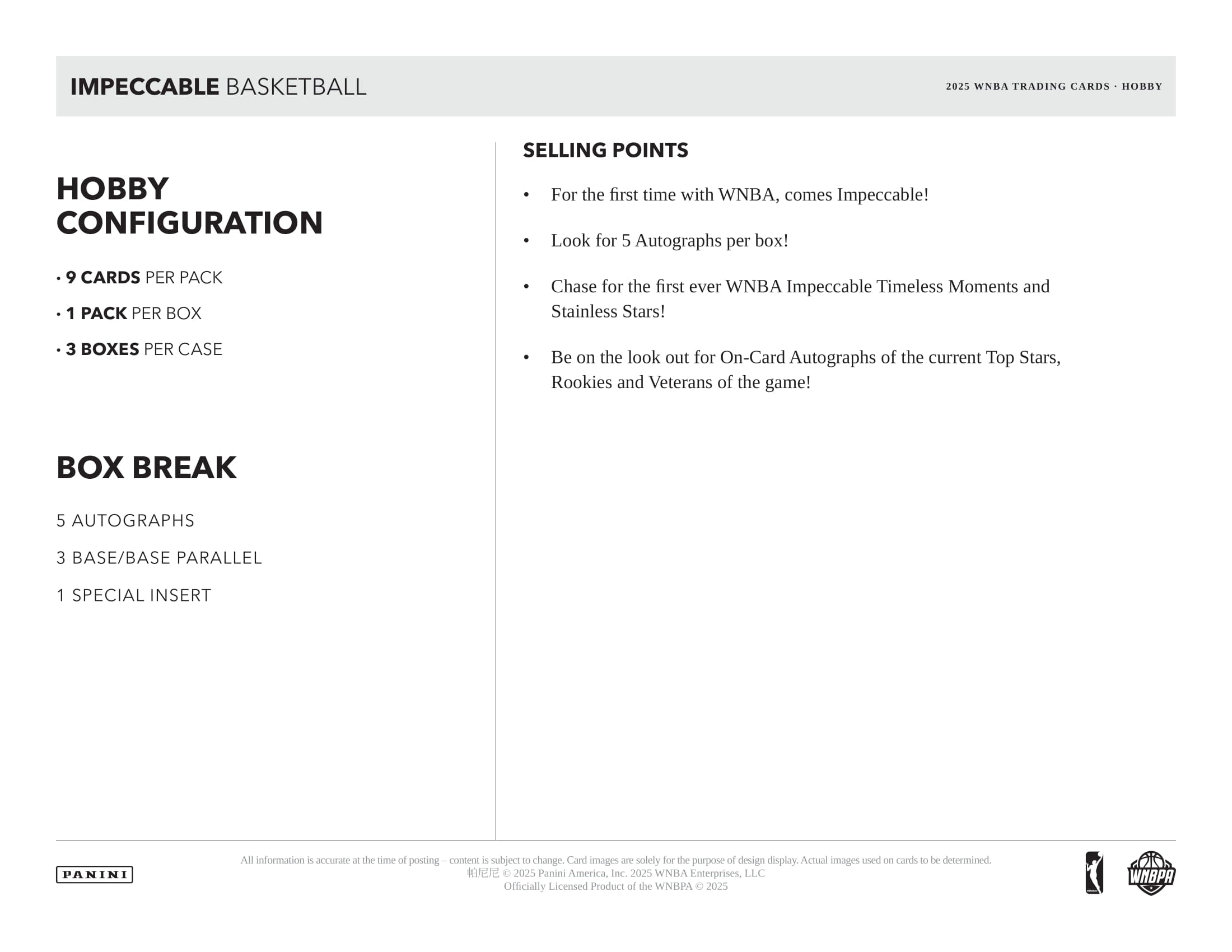 2025 Panini Impeccable WNBA Basketball Hobby Box