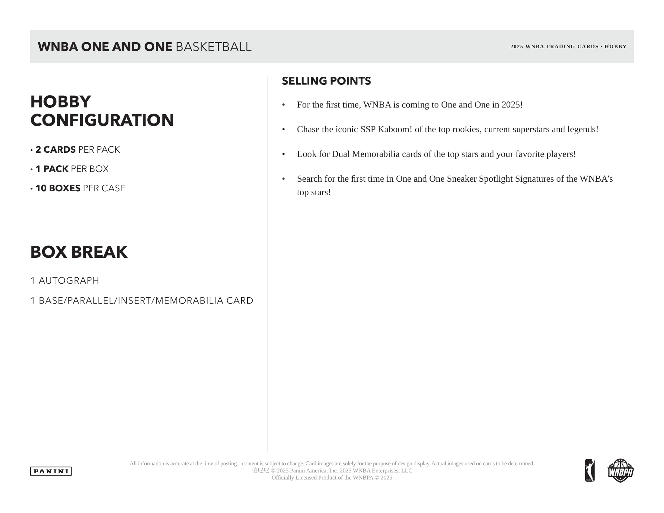 2025 Panini One and One WNBA Basketball Hobby Box (Presale 2/11)