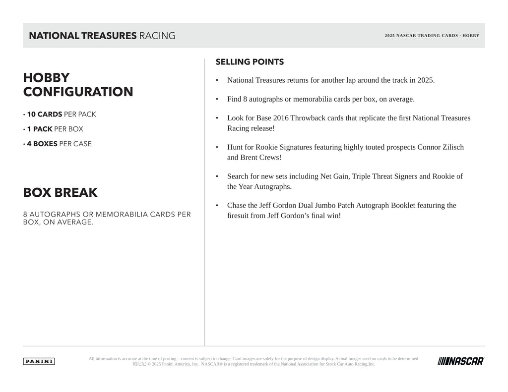 2025 Panini National Treasures Racing Hobby Box (Presale 12/17)