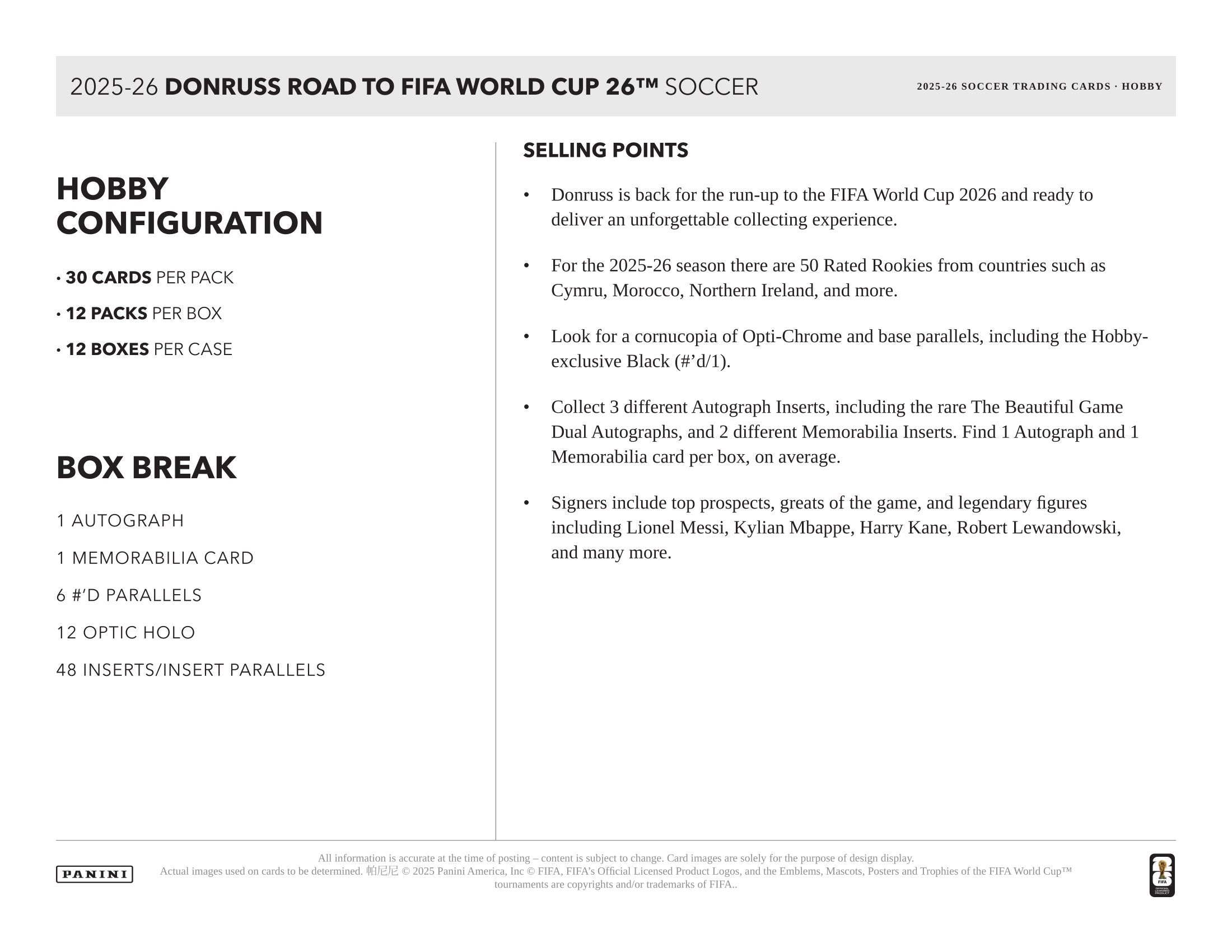 2025-26 Panini Donruss Road to FIFA World Cup Soccer Hobby Box (Presale 3/12)