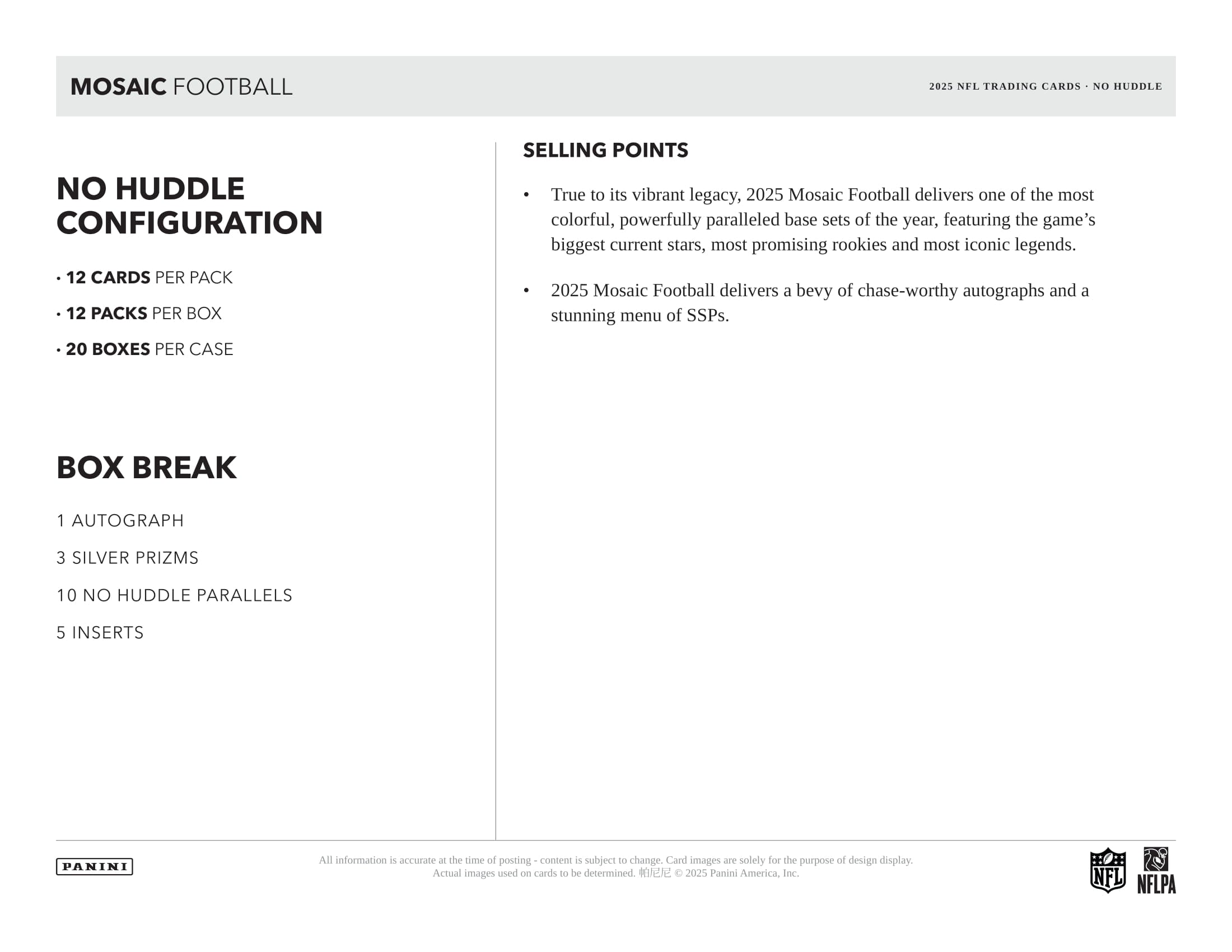 2025 Panini Mosaic No Huddle Football Hobby Box (Presale 11/26)