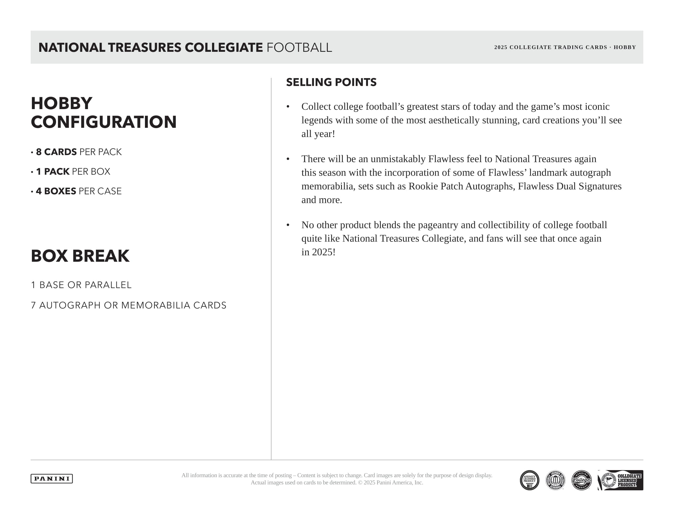 2025 Panini National Treasures Collegiate Football Hobby Box (Presale 12/19)