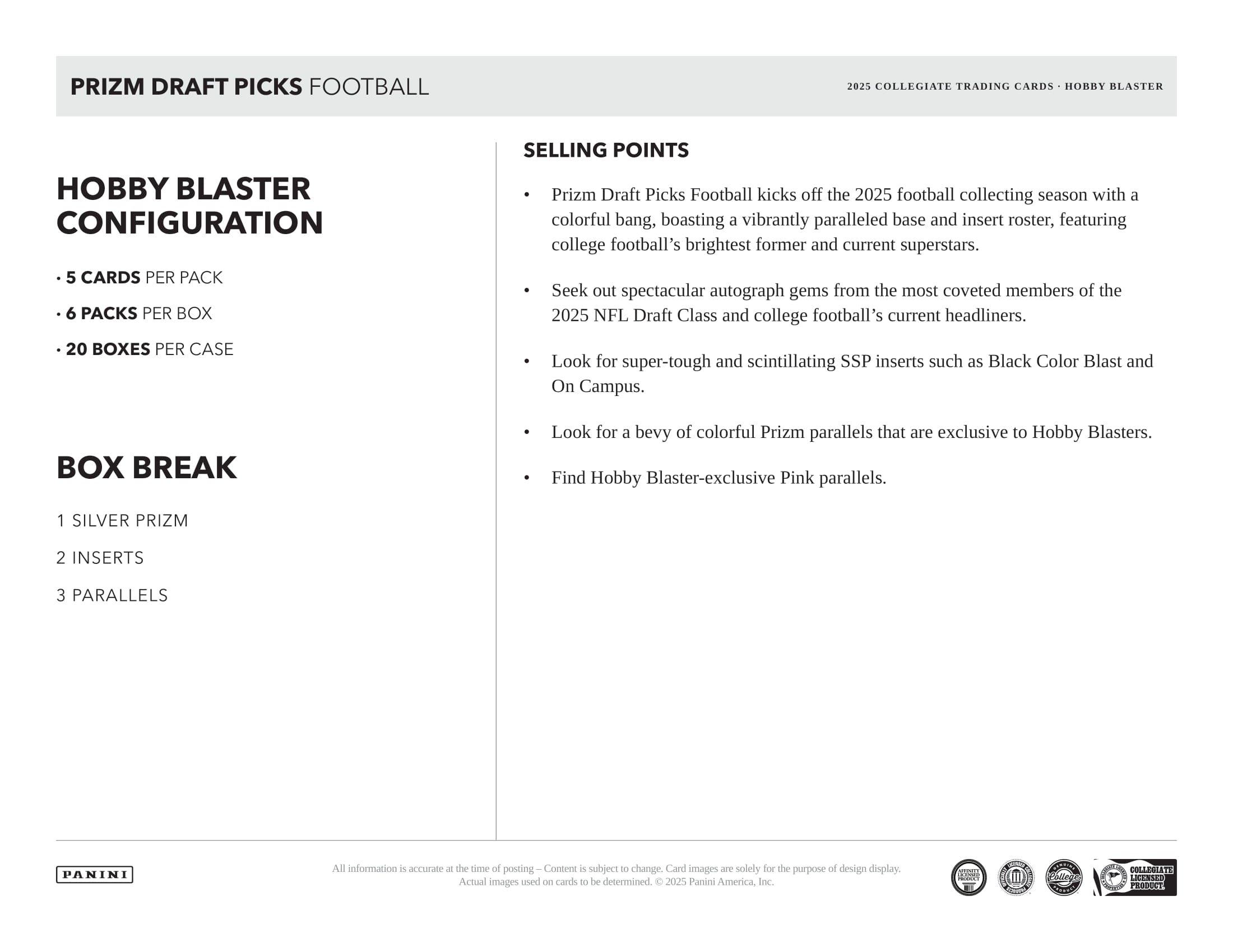 2025 Panini Prizm Draft Picks Collegiate Football Hobby Blaster Box