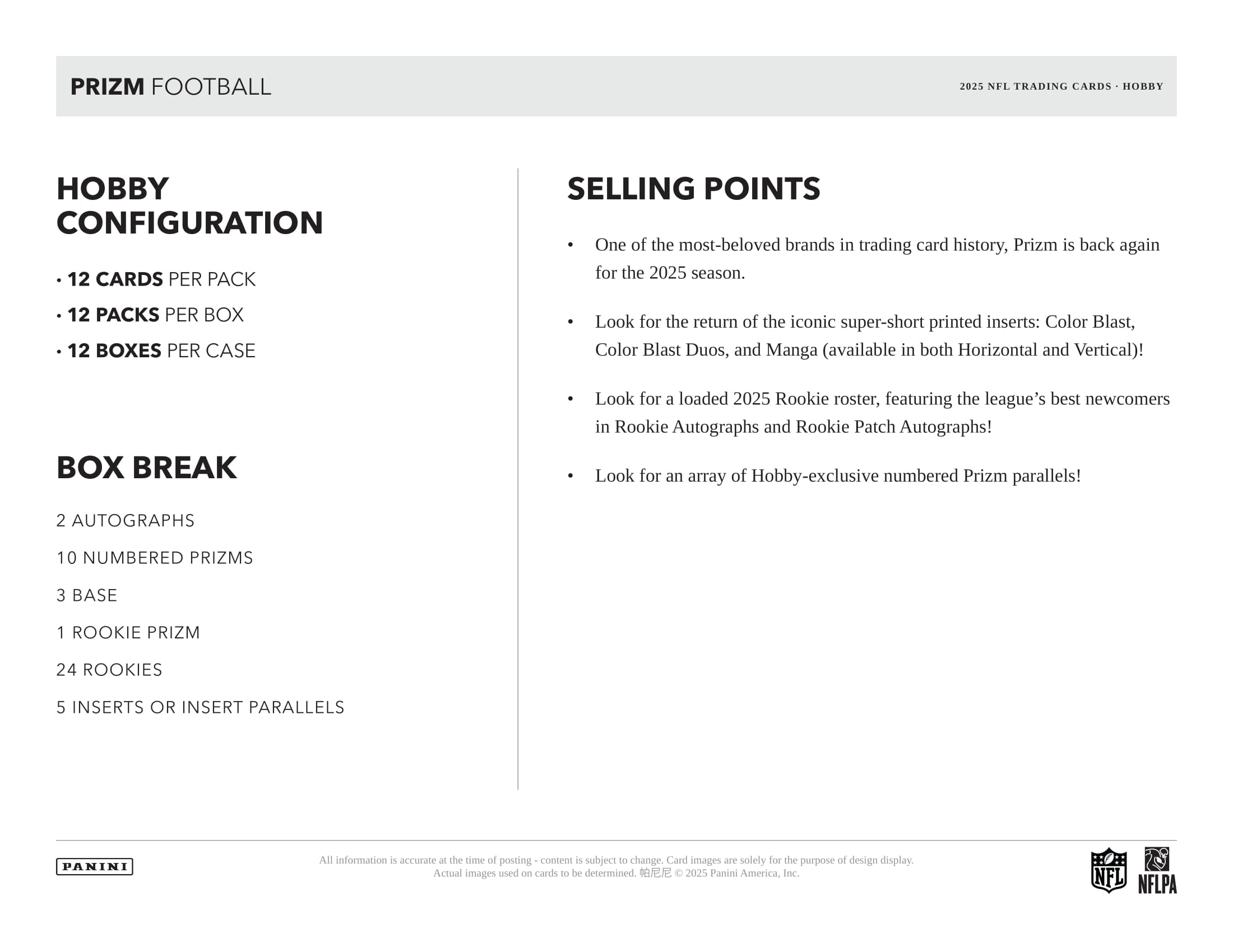 2025 Panini Prizm Football Hobby Box (Presale 1/9)