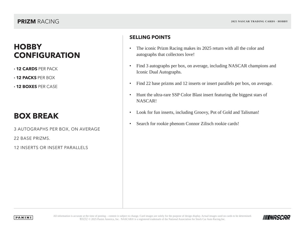 2025 Panini Prizm Racing Hobby Box (Presale 12/24)