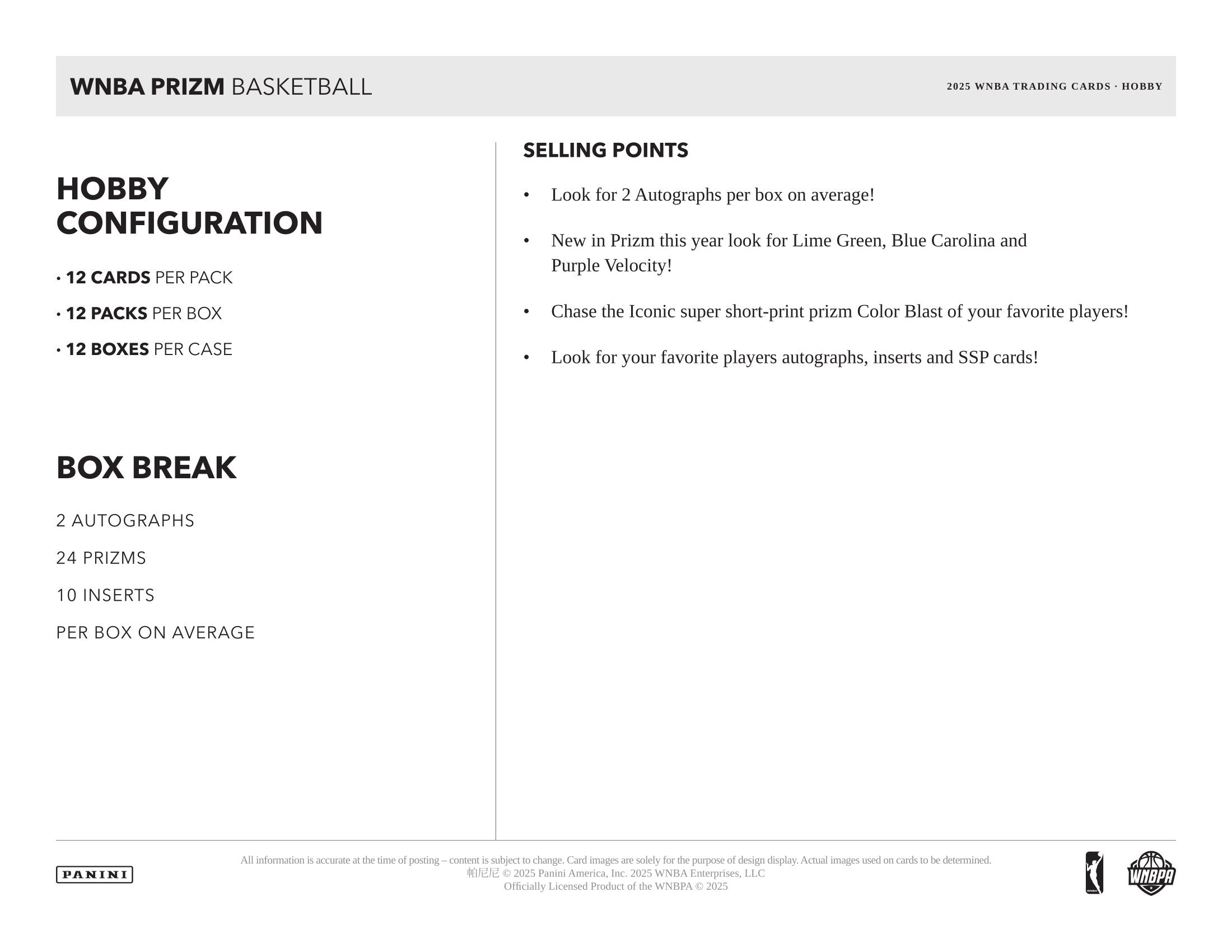 2025 Panini Prizm WNBA Basketball Hobby Box (Presale 3/25)